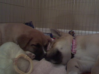 Day two with the pups is winding down. They went for a walk out in our backyard and played in the snow. But Sophie's not feeling well and not eating. Rosie's just bushed.