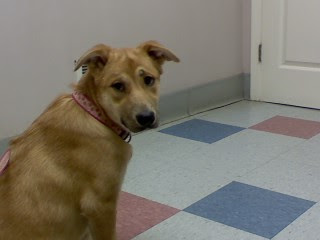 She's her normal self, of course — not happy to be at the vet and not crazy about having to ride in the car. but otherwise the picture of health.