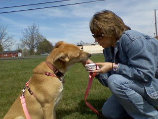 Rosie needed a little encouragement from mommy, but she digs the vanilla as much as her sister (see previous post).