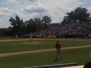 My brother, Mark, and I are at the Thunder game inTrenton with my nephew Dan. It's hot and the score in the middle of the seventh is 1-0 Sea Dogs. While there's benn little scoring, it's not because of the pitching, which has featured walks, walks, more walks and wild pitches.