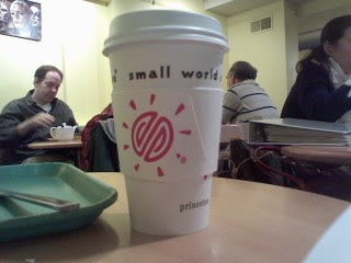 There is something comfortable about the chatter at Small World Coffee in Princeton, like a jazz band pushing its multi-piece improvisation into overdrive.