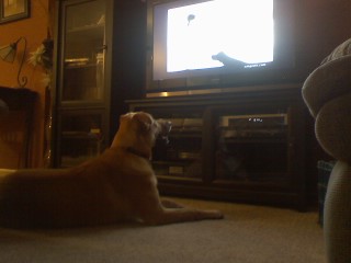 Rosie and Sophie, as I've said before, like watching “The Dog Whisperer” — maybe a bit too much. Rosie is good, but Sophie goes after the flat screen. It'd be funny if the TV wasn't in the line of fire.