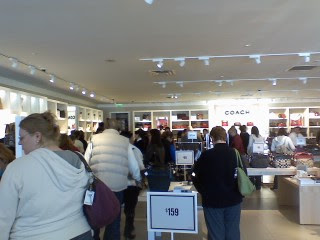 We're at the Coach outlet in Jackson browsing — thanks to a coupon — and it's packed. I know everything is on sale, but this seems crazy for a pre-Thanksgiving Saturday during a painful recession.