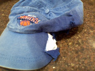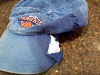 Although I often feel this way about the Knicks, I rarely take it out on inanimate objects like the dogs did this morning to my hat.