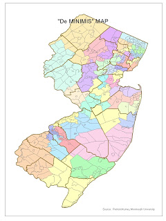The “De Minimus” map I’ve included with this post has South Brunswick, Monroe, East Brunswick and Franklin making up a new district. What’s left of the current 14th would be filled out with East Windsor, Hightstown, Robbinsville and Millstone; the 15th would get southern Hunterdon County and so on.