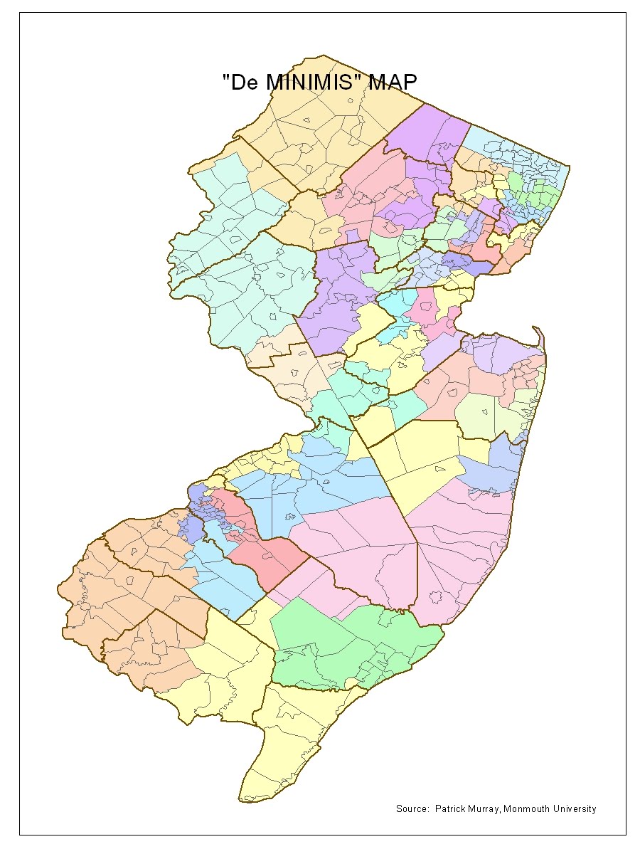 The “De Minimus” map I’ve included with this post has South Brunswick, Monroe, East Brunswick and Franklin making up a new district. What’s left of the current 14th would be filled out with East Windsor, Hightstown, Robbinsville and Millstone; the 15th would get southern Hunterdon County and so on.