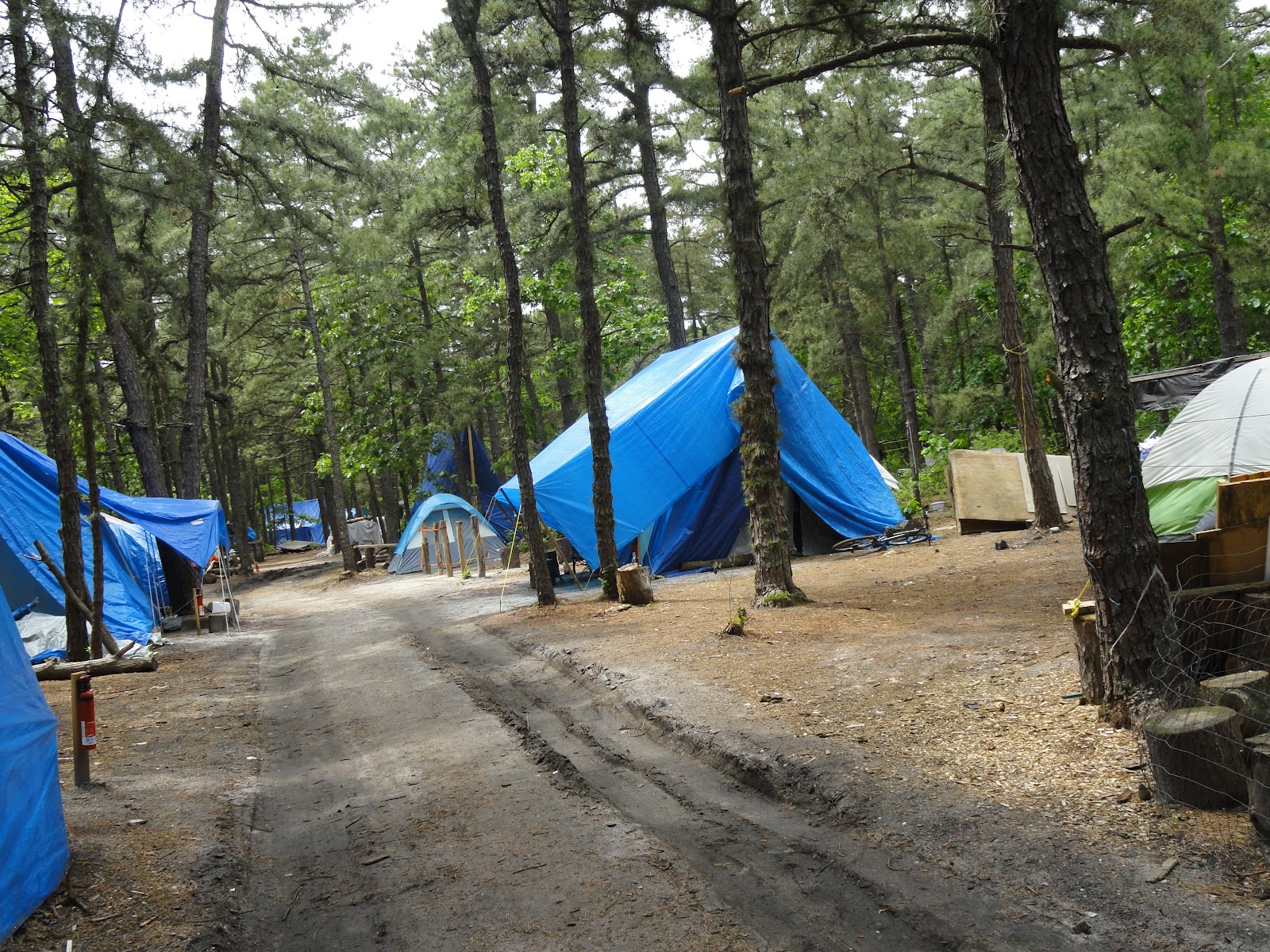 William, who arrived early this morning with his girlfriend Lisa, is a house painter who works seasonably in Seaside Heights — doing most of his work in the winter when the hotels are closed. Once they opened, he lost his job and the ability to pay his rent. They moved in with a friend in Freehold, but it turned out the friend was bipolar and off his medication and he began threatening them. So they left and moved into tent city.