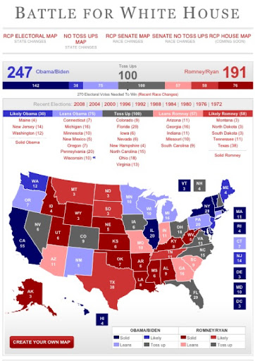 If the current state-level polling holds, it is difficult to see how mitt Romney can win the White House. According to Real Clear Politics, which is where this map comes from, President Barack Obama has 247 electoral votes that are considered either solid, strong or lean blue — essentially states where he leads by better than 5 percentage points. Romney, on the other hand, is at 191.