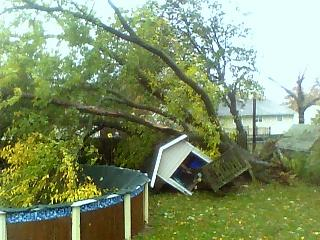 It’s been quiet here so far, but not everyone has been so lucky. Here is a photo from friends in Piscataway — a tree took out an old playhouse in their yard, which is probably a lucky stroke as well. Had the tree fallen the other way, who knows.