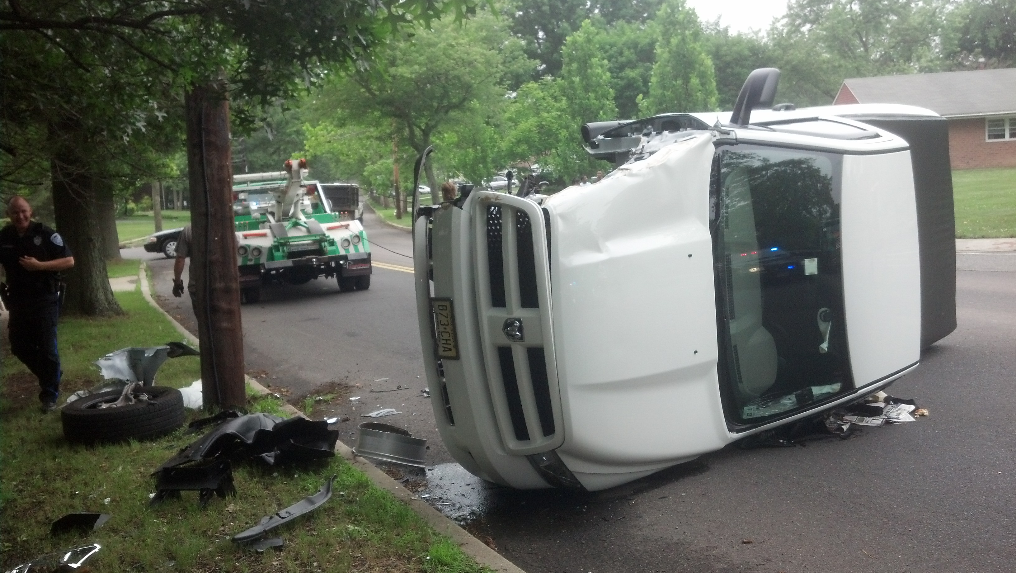 The driver, according to the report, reached for something in his truck and took his eyes off the road. The truck veered to the right, hit a pole and flipped. He was unhurt.