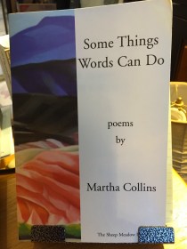 I’ve been reading an early book of poems by Martha Collins over the last few months, taking in a few pages at a time between the grading of papers, the reading of material I’ve assigned to my students and some history and fiction. Some Things Words Can Do — a collection that is actually two collections (STWCD and A History of Small Life on a Windy Planet) — is both an exploration of the uses of language (I’m playing around with a response poem now) and of the violence that seems endemic to our world. It is a work at once playful and angry, contemplative and very contemporary.