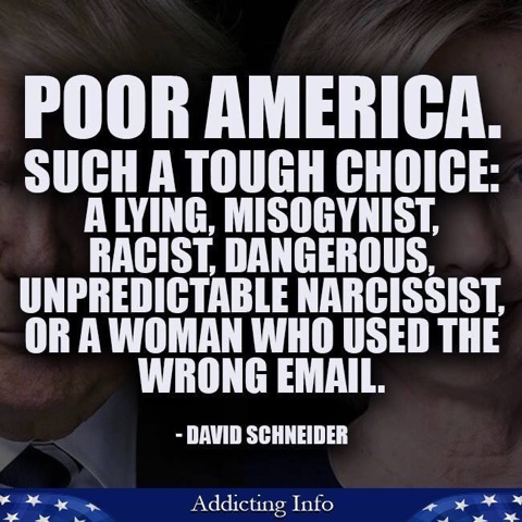 I can buy the first part. Donald J. Trump is exactly what this meme says he is, and probably worse. But Trump’s absolute horribleness should not obscure the fact that Hillary Clinton is far from a perfect candidate. It’s not just the email, and pretending it is will set progressives up for some rough times during a Clinton administration.