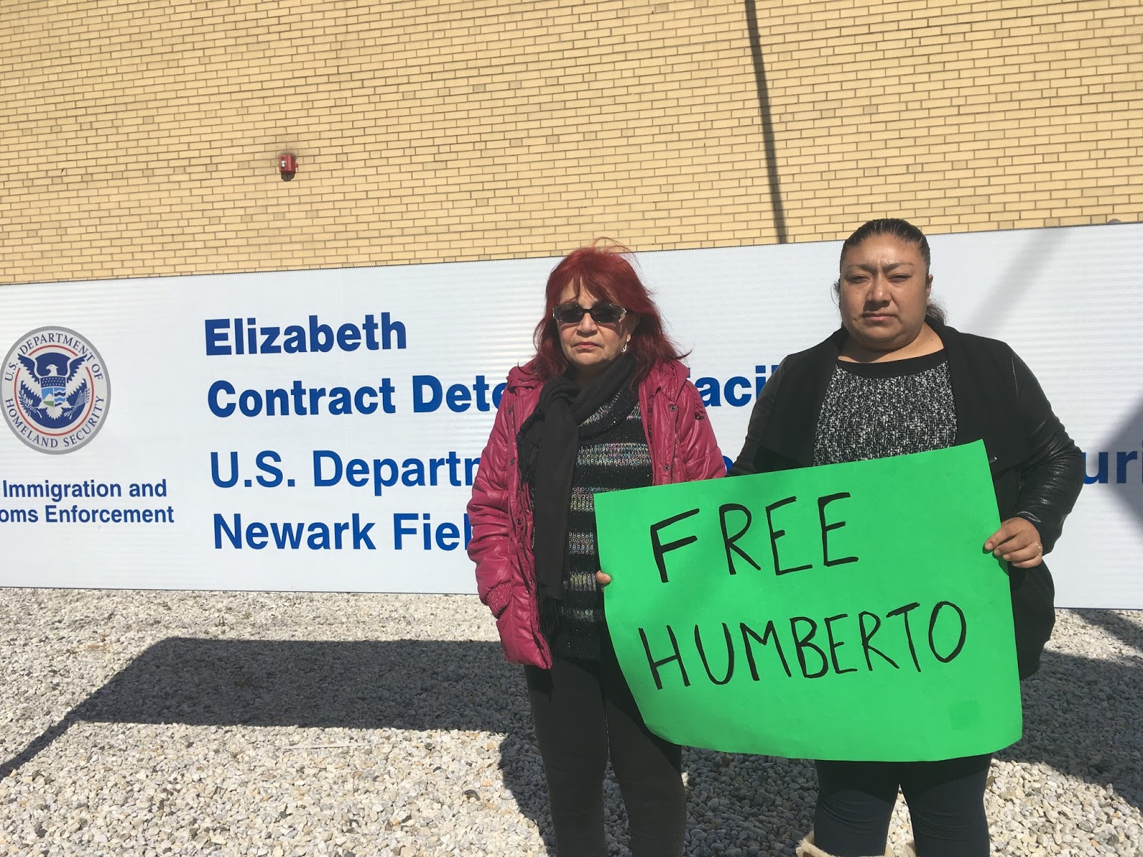 | Aracely Cantero (right) and a member of Make the Road NJ protest on behalf of Humberto Cantero, who is in ICE detention in Essex County. |
