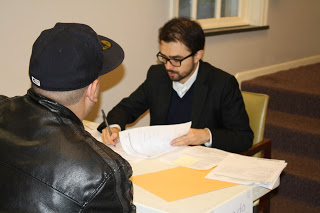 | Immigration attorney Oscar Barbosa councils a Dreamer during a DACA information session in Hightstown in 2012. |