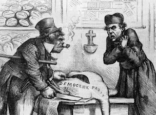He goes on to describe the current debate over Confederate statues, which really is a debate over imagery, over symbols, and a debate over how we define the word “American.” There always has been an element of race in this definition. Americanness and whiteness have been conflated. This notion has created a racial hierarchy, but also allowed the notion of white supremacy to maintain its hold. Whiteness originally included only the Brits, Germans and French. The Irish, early on, were an other, portrayed in political cartoons as apes, left to toil in decrepit cities with free blacks and other “others.” But whiteness has been a fungible concept, as Nell Irvin Painter points out in The History of Whiteness, expanding to include previously excluded groups as a way of buttressing the white power structure against changing demographic tides. The Irish were first, subsumed into whiteness as a bulwark against emancipated blacks and the growing immigration from southern and Eastern Europe. Christian immigrants were next, and so on.