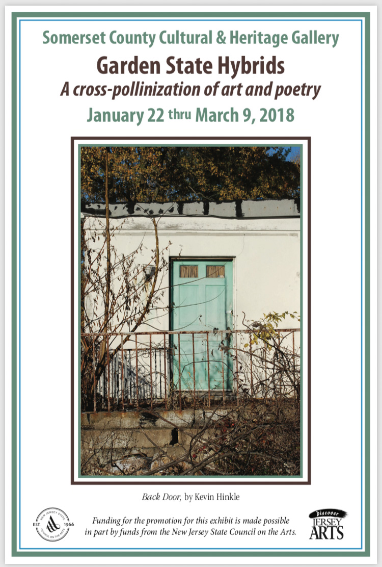 Garden State Hybrids, an ekphrastic show featuring the photography of Kevin Hinkle and poetry from an array of central New Jersey writers, will run from Jan. 22 to March 9 at the Somerset Cultural & Heritage Center, 20 Grove St., Somerville, NJ. My poem “Invisible,” which is based on Hinkle’s photo “Aftermath no. 6,” will be among those on display.