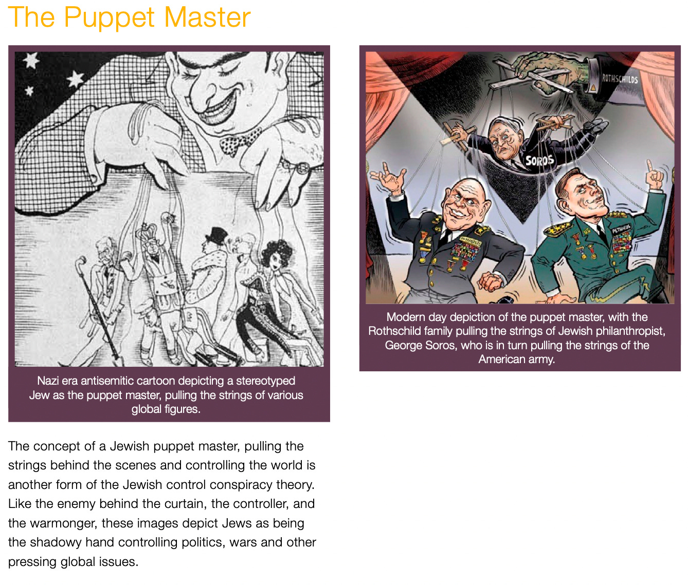 From a report from the Antisemitism Policy and Trust called “Antisemitic Imagery and Caricatures.” Note the use not only of the marionette image, but of Soros as the puppet master. Trump on Monday used his Truth Social platform to misleadingly claim that Bragg “received in EXCESS OF ONE MILLION DOLLARS” from Soros. Ohio Sen. J.D. Vance tweeted that the prosecutor was “bought by George Soros.” Florida Gov. Ron DeSantis called the case a “manufactured circus by some Soros-DA.” The connections between Soros and Bragg are tenuous, at best, says the AP, but that is irrelevant to the Republican and conservative mind conspiracy mind. Soros, like the Rothschilds before him, is painted part of a larger imagined cabal that runs the world. Additional reading: