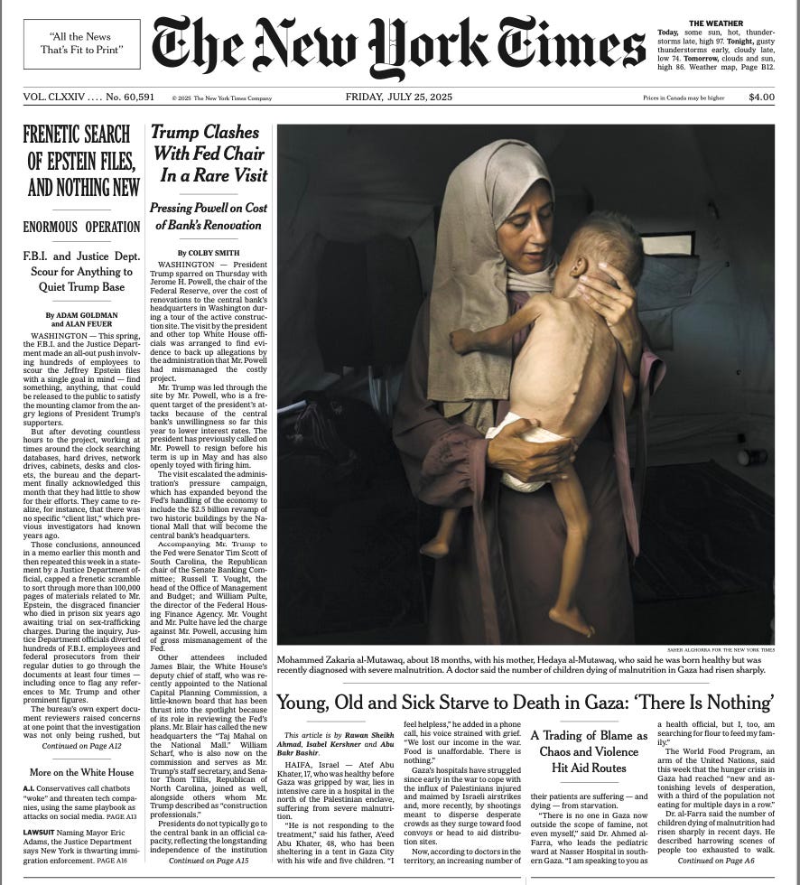 Cherry-picking for Propaganda and Politics A starving child with cystic fibrosis, one of thousands of starving children in Gaza, is suddenly cast by the right as proof that famine is being overblown. An undocumented Dominican is accused of slashing a police officer — and used as evidence that “criminal aliens” are running rampant, fueling crime waves in so-called sanctuary cities. A singular (so far) “bad” jobs report, rather than being viewed as a warning, is recast as nefarious, “cooked books” designed to make the president look bad. Three separate and, seemingly, unrelated news items from late July and early August. Three cases, however, that are intimately connected — because of what they say about how we process facts and especially how the conspiratorial right uses and misuses information as it crafts narratives designed to prop up President Donald Trump.