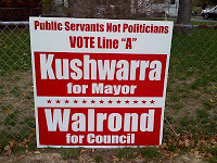 And it happens at the local level, as well. Mike Kushwarra and Steven Walrond, the Republicans running for mayor and Township Council in South Brunswick, are calling themselves “public servants not politicans,” a claim that automatically paints the opposition as politicians. Both were township police officers and still live in town — the public service part of the claim — but aren’t they, by virtue of the campaign, politicians, as well? Walrond, of course, ran for council two years ago — which makes it pretty clear that he is a politician just like everyone else. And Kushwarra has run for school board, so I leave it to readers to make up their minds.